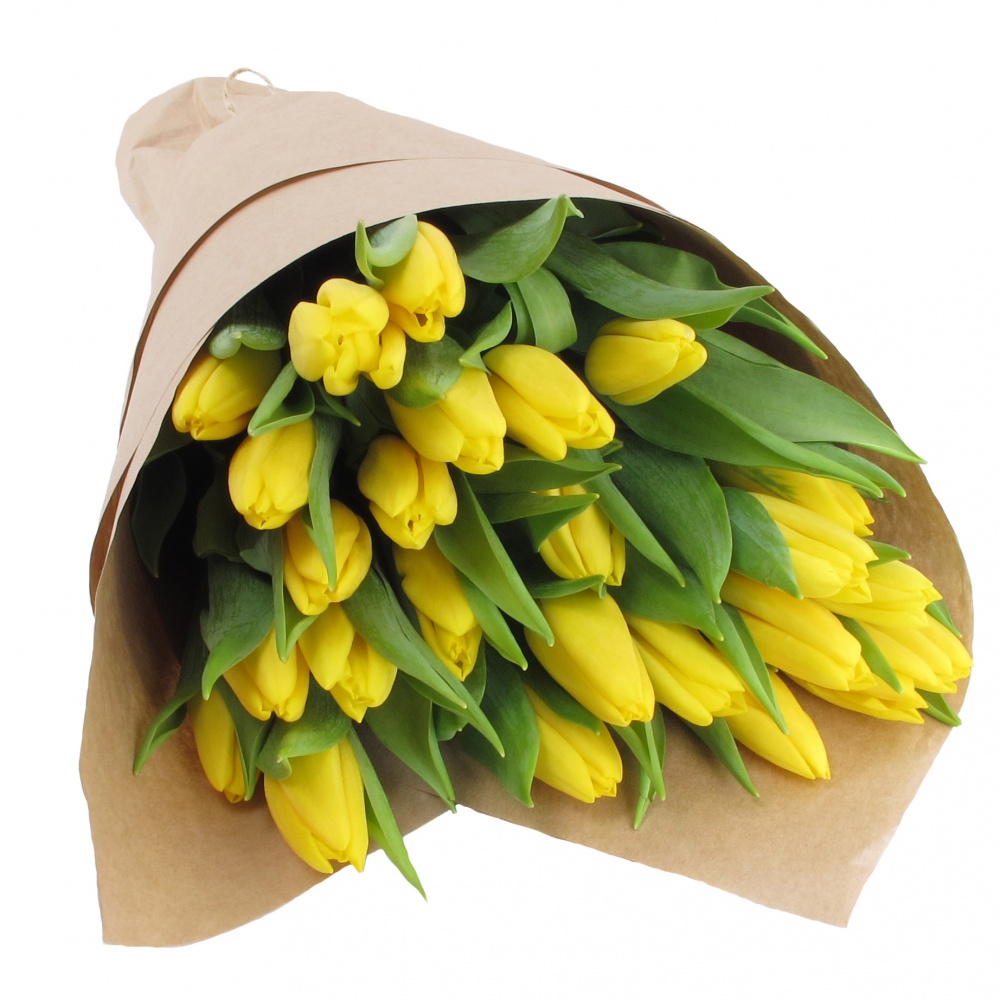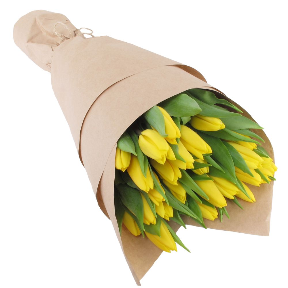 Букет из 25 тюльпанов в крафте (жёлтые)