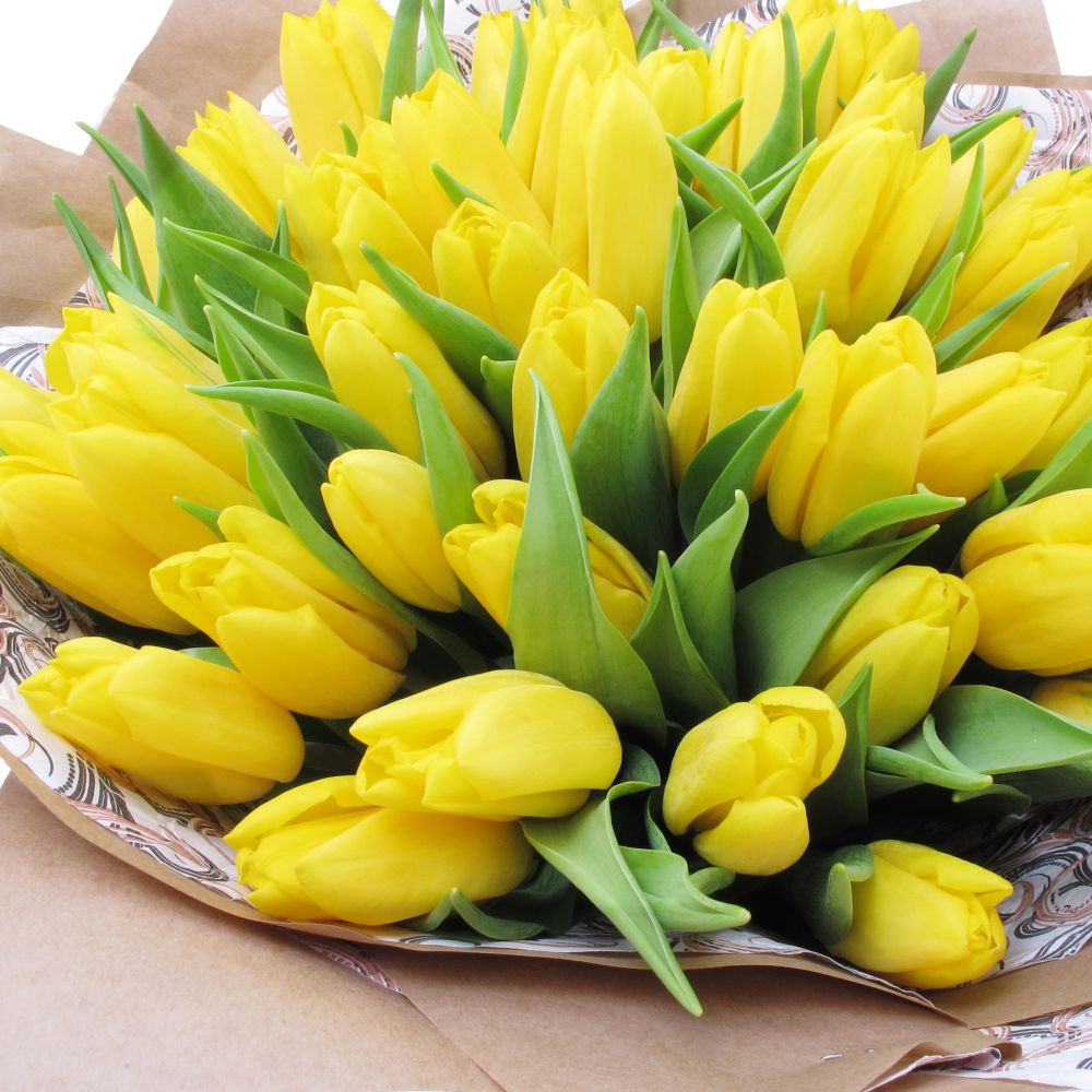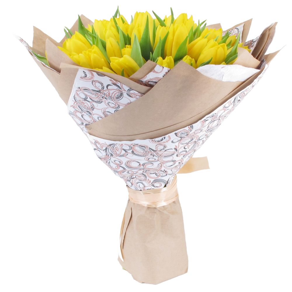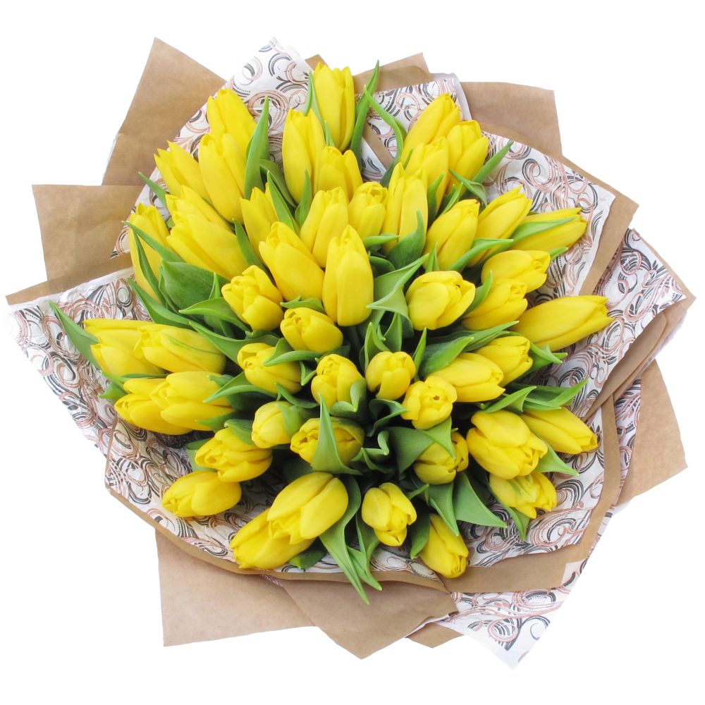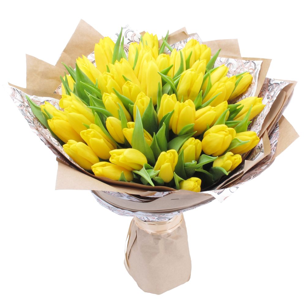 Букет из 51 тюльпана в крафте (жёлтые)